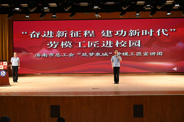 本次活動邀請了濟南市總工會“筑夢泉城”勞模工匠事跡宣講團的7位勞模代表擔任主題宣講者,學校新入職教師、2023級部分學生近900人參加了此次宣講活動。