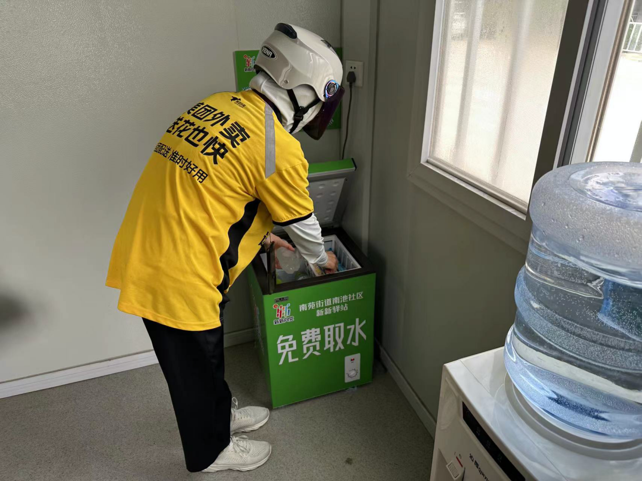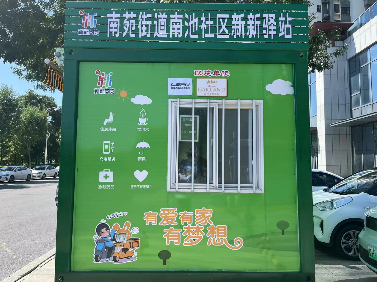 “新新驛站”是將閑置的核酸采樣亭進(jìn)行煥新改造,內(nèi)設(shè)空調(diào)、冰箱、飲水機(jī)、座椅、充電器、雨傘、急救藥品箱、打氣筒、花露水、血壓計(jì)等便民設(shè)施及物品,為小區(qū)業(yè)主、快遞員、出租車司機(jī)、環(huán)衛(wèi)工人及外賣員提供便利服務(wù)和休息場所。