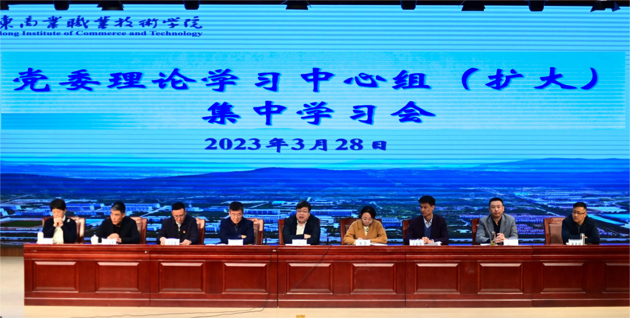 山東商院黨委理論學(xué)習(xí)中心組成員參會(huì),中層領(lǐng)導(dǎo)干部列席。