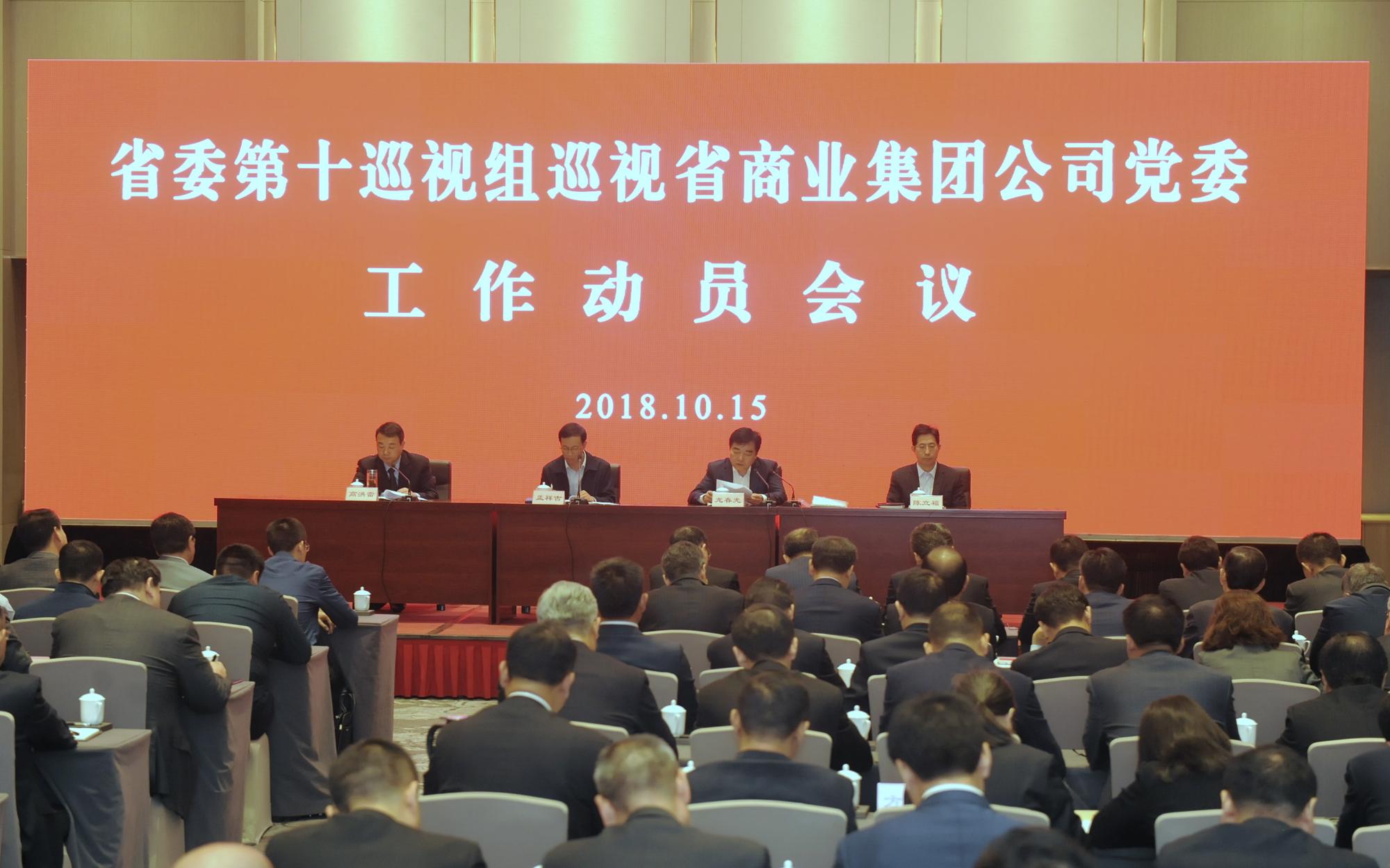 按照省委關于巡視工作的統一部署,2018年10月15日上午,省委第十巡視組巡視山東省商業集團有限公司黨委工作動員會召開。會前,省委巡視工作領導小組成員孟祥吉主持召開與公司黨委書記、董事長高洪雷的見面溝通會,會議傳達了省委書記劉家義關于巡視工作的講話精神。動員會上,省委第十巡視組組長龍春光就即將開展的巡視工作作了動員講話,孟祥吉就配合做好巡視工作提出要求。高洪雷主持會議并作表態發言。