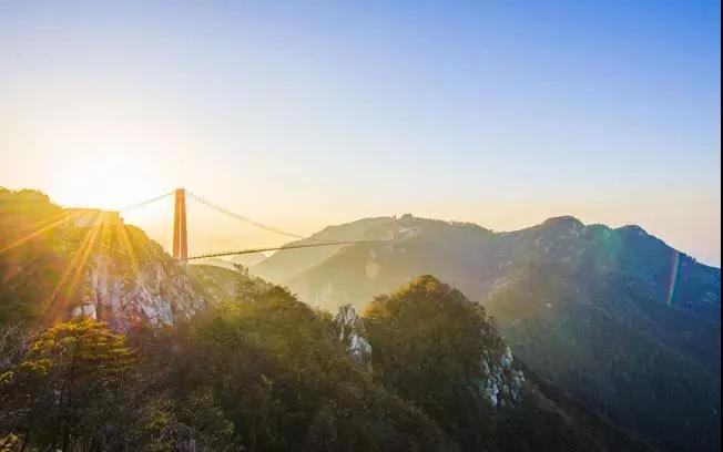 腳底板下是玻璃的不止是纜車,還有塔山頂上的空中觀景臺。站在玻璃臺上,你眼前是青山疊翠,腳下是絕壁深淵。但最極致的玻璃體驗還不在此,而在一座橋上。這橋保持著一項世界紀錄,是“世界第一人行懸索橋”,最長,跨度最大。橋中間有一段,大概60米吧,也是玻璃的。當你走在玻璃橋上,上下左右皆空,唯有大風獵獵,會有御風而行的神奇幻覺。