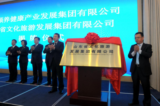 11月30日上午,山東省文化旅游發(fā)展集團(tuán)有限公司(簡稱山東省文旅集團(tuán))、山東頤養(yǎng)健康產(chǎn)業(yè)發(fā)展集團(tuán)有限公司(簡稱山東頤養(yǎng)集團(tuán))揭牌儀式在山東大廈舉行。省國資委黨委書記、主任張斌出席儀式并講話,魯商集團(tuán)黨委書記、董事長高洪雷,魯商集團(tuán)黨委副書記劉守亮共同為山東省文旅集團(tuán)揭牌。