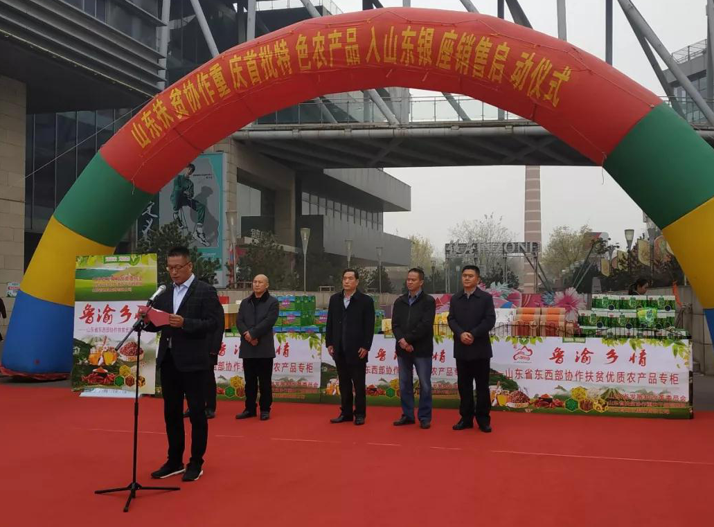 12月1日,山東扶貧協作重慶首批特色農產品進駐山東銀座銷售啟動儀式在濟南玉函店舉行,協作品牌第一批優質農產品正式亮相濟南銀座超市。