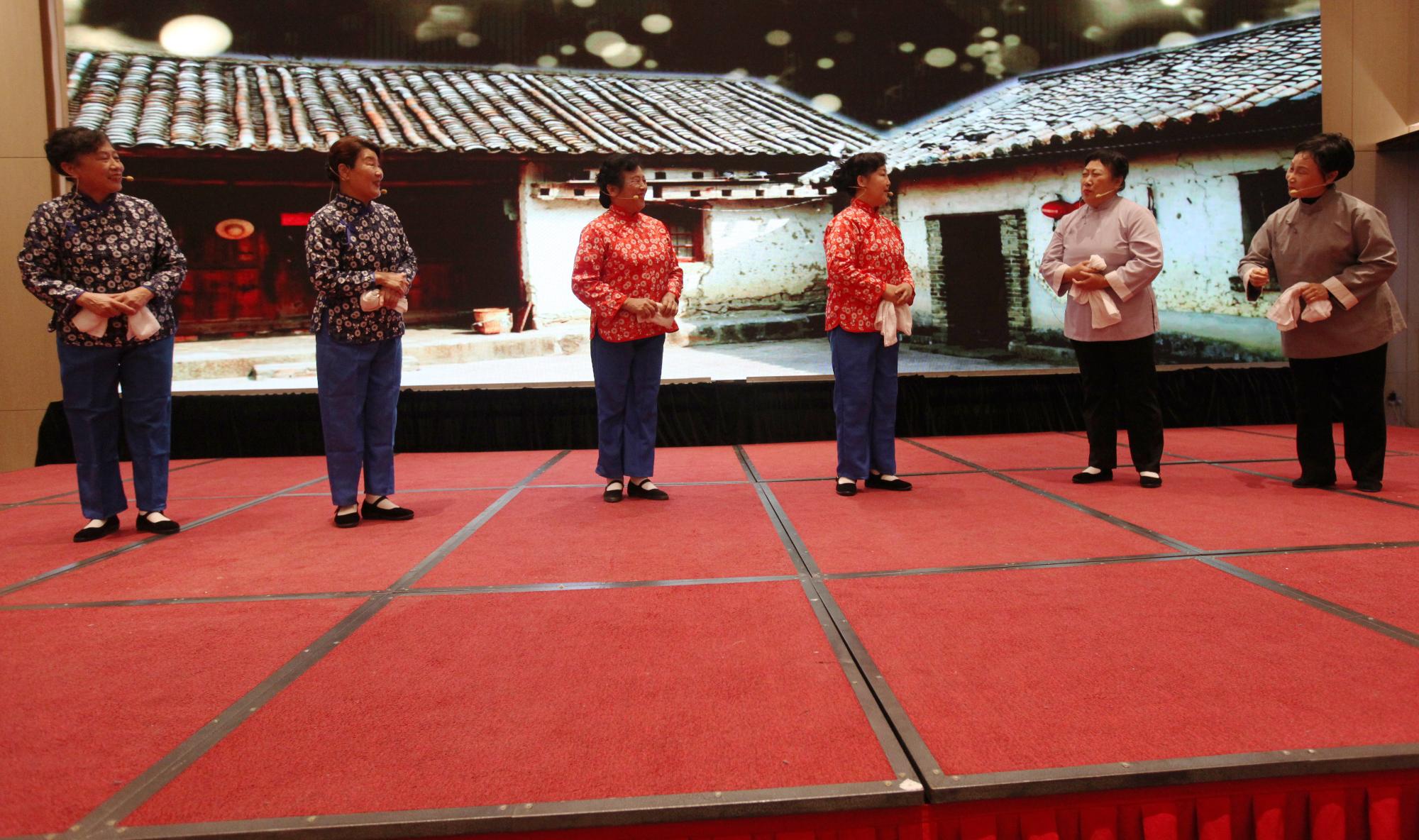 節(jié)目結束后,小朋友們?yōu)槔细刹克蜕洗郝?lián)和福字。