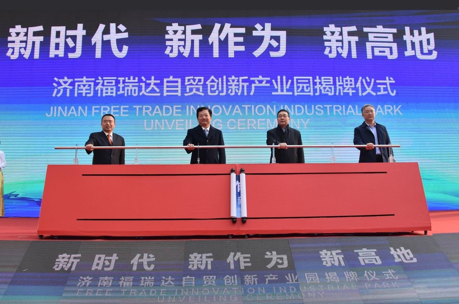 12月20日上午,濟(jì)南啤酒集團(tuán)有限公司(以下簡(jiǎn)稱濟(jì)啤集團(tuán))旗下的濟(jì)南福瑞達(dá)自貿(mào)創(chuàng)新產(chǎn)業(yè)園揭牌儀式在魯商福瑞達(dá)廣場(chǎng)舉行。濟(jì)南市委常委、副市長(zhǎng)鄭德雁,省商業(yè)集團(tuán)有限公司(以下簡(jiǎn)稱魯商集團(tuán))黨委副書記、總經(jīng)理凌沛學(xué)出席并致辭。濟(jì)南市商務(wù)局局長(zhǎng)、山東自貿(mào)試驗(yàn)區(qū)濟(jì)南片區(qū)管委會(huì)(籌)常務(wù)副主任劉艷秋主持揭牌儀式。