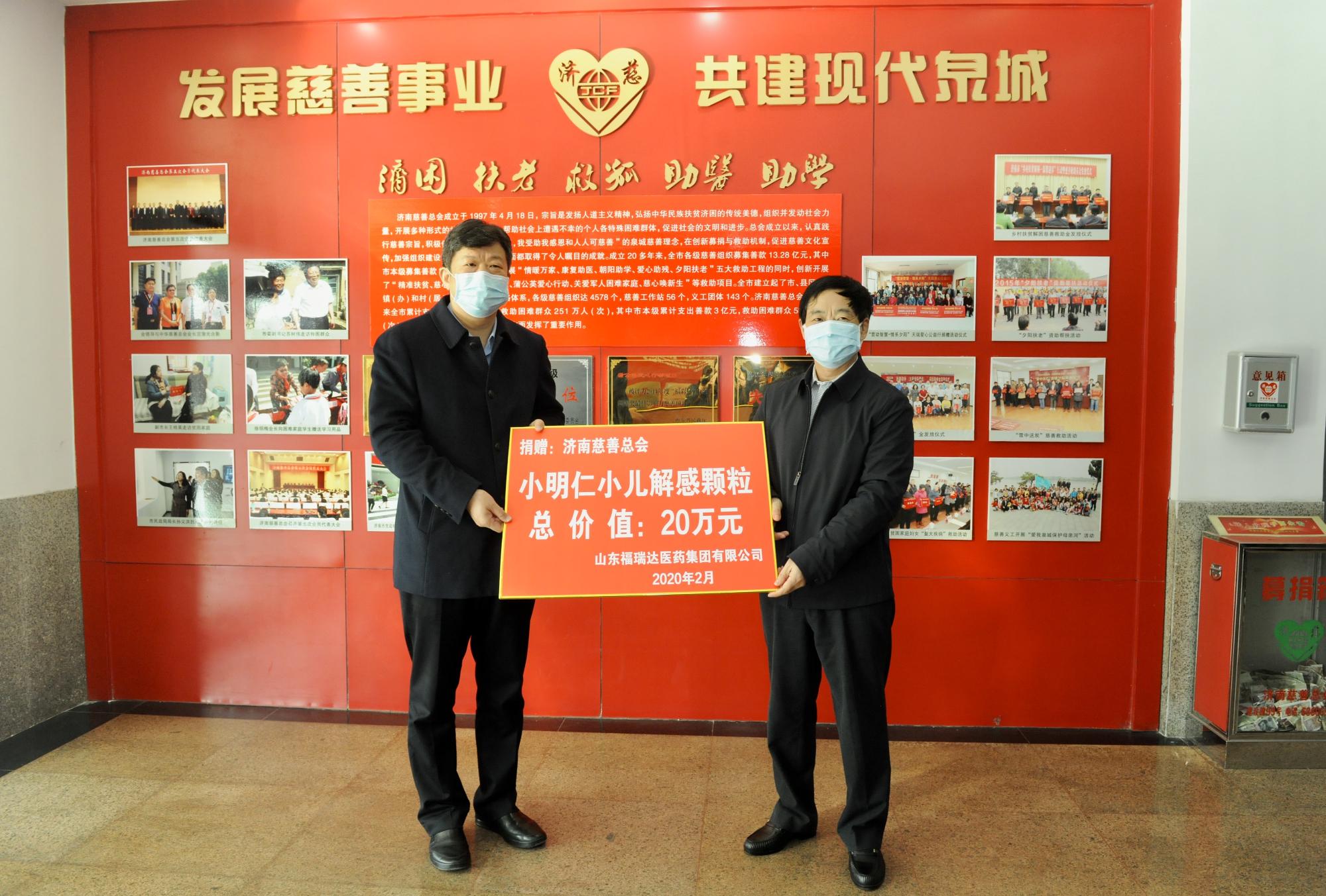 “疫情來勢兇猛,作為醫(yī)藥企業(yè),福瑞達醫(yī)藥集團深感使命神圣、責(zé)任重大。在得知小兒解感顆粒被列為推薦用藥后,公司第一時間研究討論,決定先期向社會捐贈小兒解感顆粒(6袋裝)1萬盒。”福瑞達醫(yī)藥集團負責(zé)人表示,“明仁福瑞達是一家現(xiàn)代化、科技型中醫(yī)藥企業(yè),其生產(chǎn)的小兒解感顆粒療效經(jīng)過了臨床驗證,具有清熱解表、消炎止咳的功效,對兒童感冒發(fā)燒、上呼吸道感染等癥狀有顯著的防治作用。”據(jù)了解,首批萬盒小兒解感顆粒定向捐贈給濟南市兒童醫(yī)院和濟南市兒童福利院。