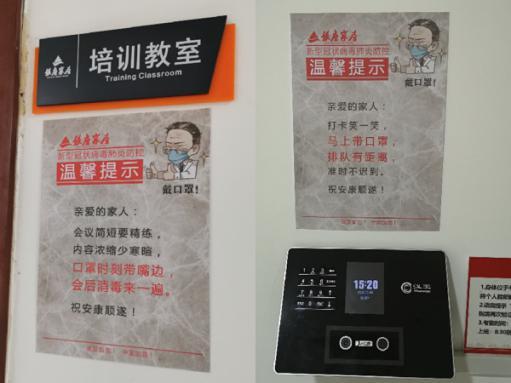 全面防疫,全面保障,為商場營業做準備。假期期間總部及各門店輪流到崗值班做好各項消毒工作,同時全面復工前在商場門口、洗手間、客服前臺等顯眼處及辦公區各科室門口、茶水間、員工餐廳等張貼“溫馨提示”,為復工和商場的營業做好全面準備。