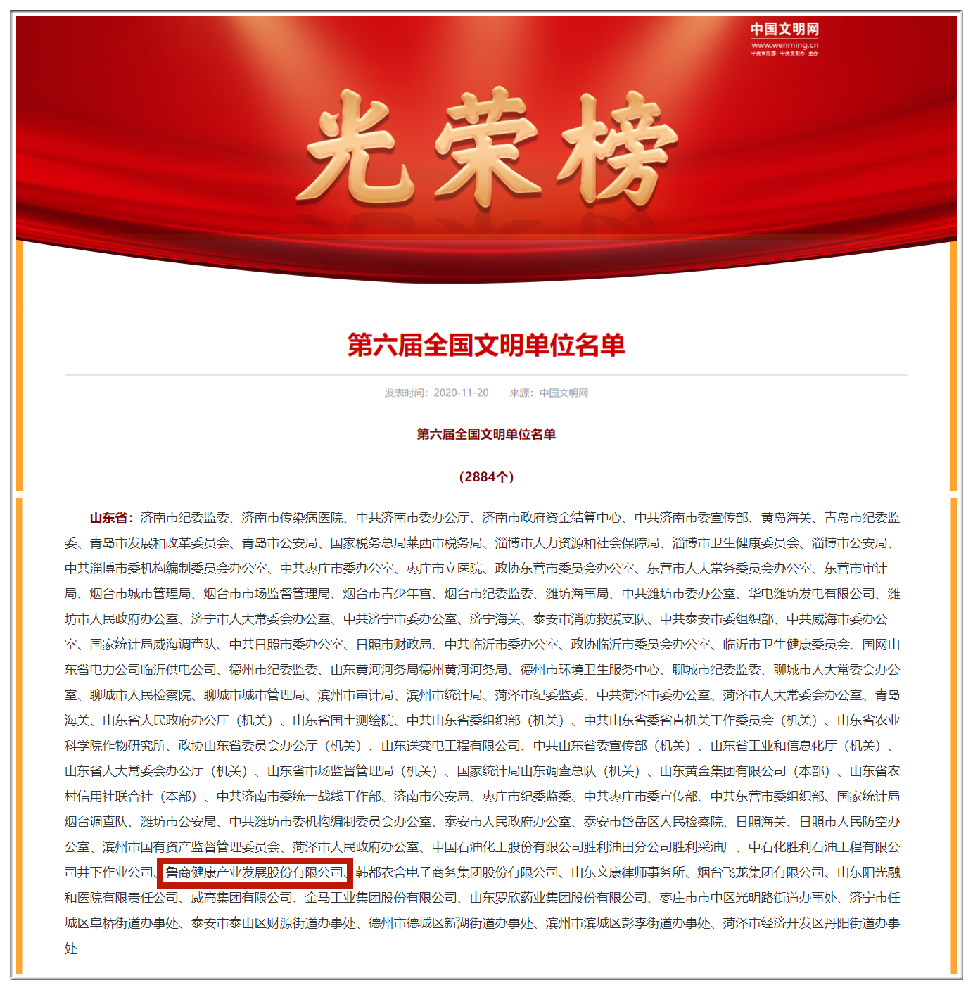 11月20日,中央精神文明建設(shè)指導(dǎo)委員會發(fā)布了《中央文明委關(guān)于表彰第六屆全國文明城市、文明村鎮(zhèn)、文明單位和第二屆全國文明家庭、文明校園及新一屆全國未成年人思想道德建設(shè)工作先進(jìn)的決定》,省商業(yè)集團(tuán)有限公司(簡稱魯商集團(tuán))所屬魯商健康產(chǎn)業(yè)發(fā)展股份有限公司(簡稱魯商發(fā)展)被評為第六屆全國文明單位。這是集團(tuán)內(nèi)第一家獲此殊榮的單位。