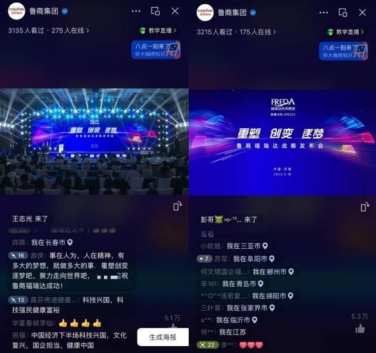 本次發(fā)布活動通過“魯商集團”微信視頻號、抖音號、“福瑞達醫(yī)藥集團”微信視頻號同步直播,全國各地網(wǎng)友、粉絲共同線上見證魯商福瑞達的這一重要時刻,并寄語公司展現(xiàn)國企擔當、勇挑科技興國重任。