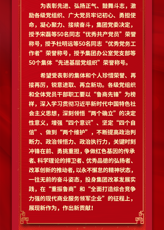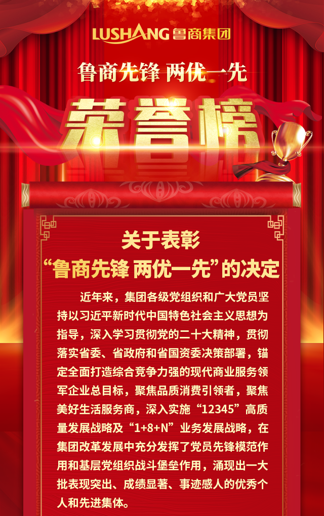 中共山東省商業集團有限公司委員會關于表彰“魯商先鋒 兩優一先”的決定