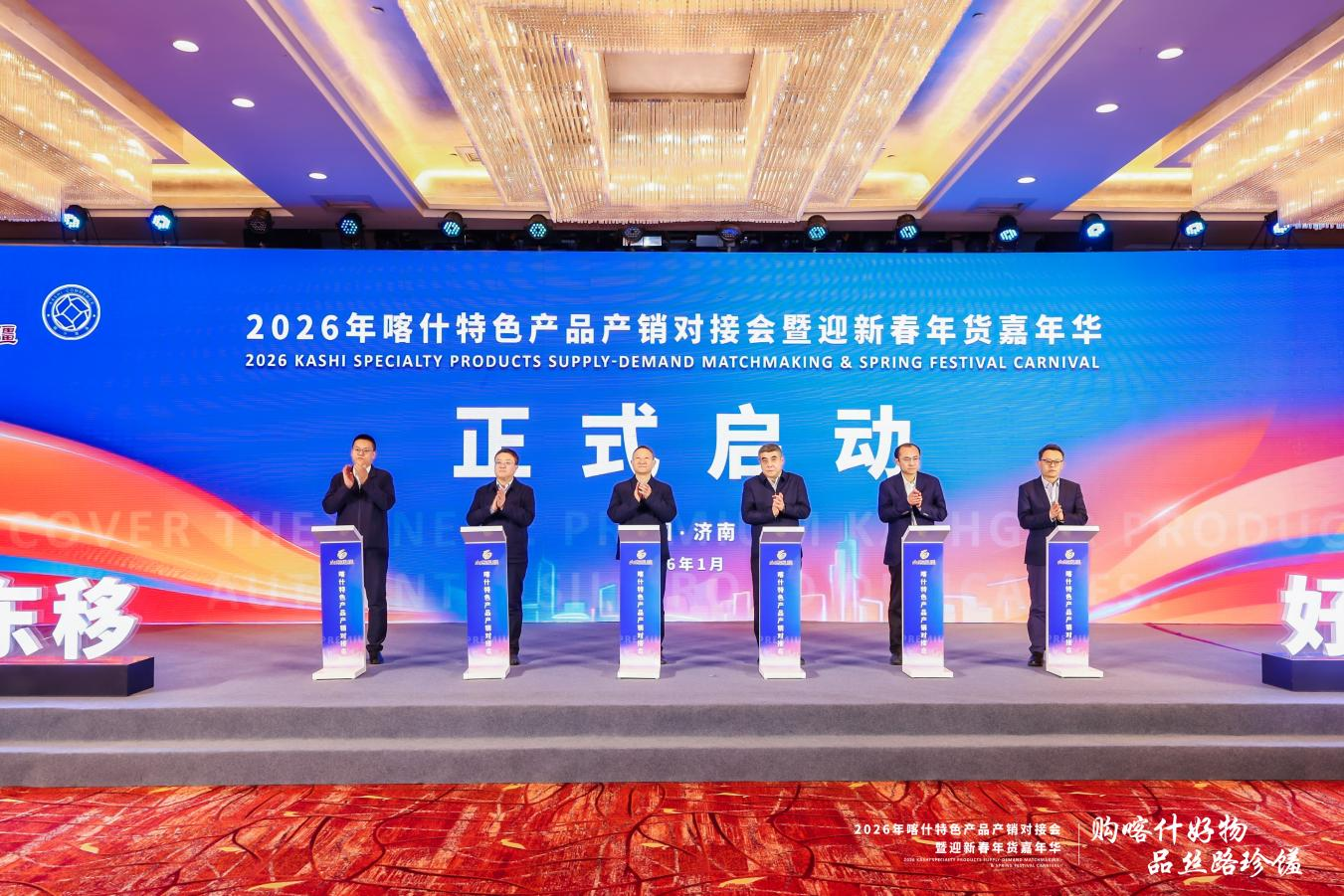 1月27日,2026喀什特色產品產銷對接會暨迎新春年貨嘉年華在濟南正式啟動。活動由山東省發展改革委、山東省國資委、山東省對口支援新疆工作指揮部指導,喀什地區商務局、中國物流與采購聯合會主辦,魯商集團承辦。