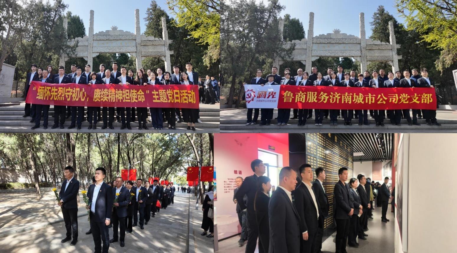 4月2日,魯商服務第一、二、三黨支部及濟南城市公司黨支部,組織黨員與青年團員前往濟南市歷城革命烈士陵園開展祭掃活動。在烈士紀念碑前,全體人員列隊肅立默哀、有序獻花,深切緬懷英烈,黨員面向黨旗重溫入黨誓詞。緊接著,眾人走進紀念館,在解說員的帶領下,深入了解那段艱苦卓絕的革命歲月。